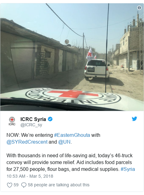 An aid convoy of lorries carrying urgently needed humanitarian supplies has entered the rebel-held Syrian area of the Eastern Ghouta.